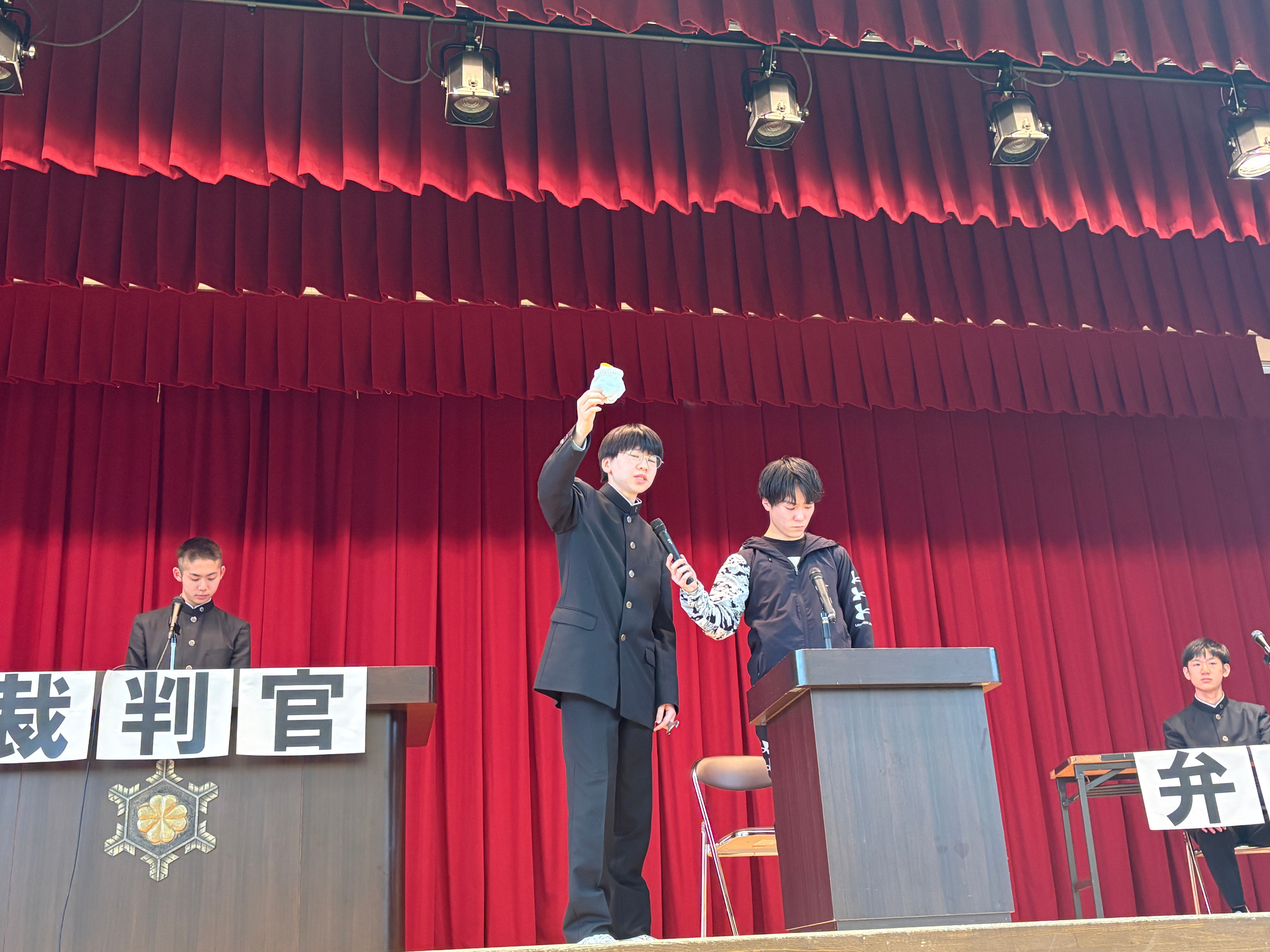 3月5日(木)1~4限目、1年生を対象に法教育セミナー「模擬裁判」を実施しました。札幌弁護士会様より14名の弁護士の先生方にご協力いただき、生徒実演による模擬裁判を鑑賞し、その後各クラスでグループ討議後、再度体育館で裁判長からの判決を聞きました。生徒は裁判員制度に対する興味・関心や理解を深めました。