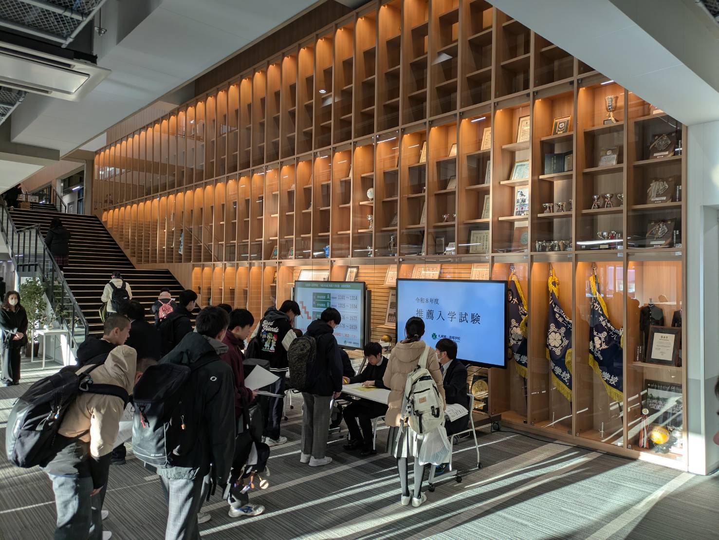 朝は氷点下10℃という厳しい寒さとなりましたが、無事に受験生全員が既定通りの時間で受験することができました。朝の入室時に受験生の顔からは緊張感が伝わり、厳かな雰囲気の中で学科試験と面接試験が行われました。受験生の皆さんのこれまでの頑張りが、今後の進路につながることを心より願っています。