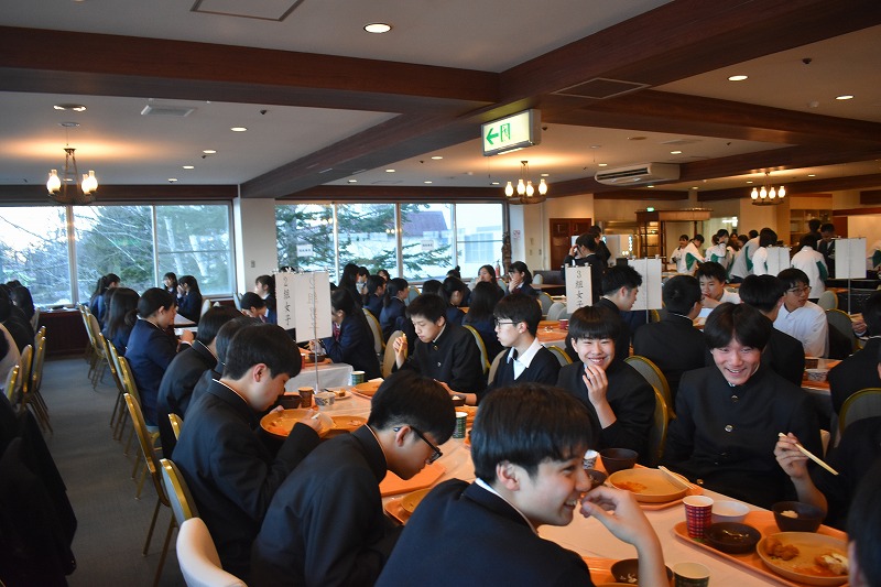 1年生を対象とした宿泊研修を4月17日(木)から4月18日(金)の1泊2日でルスツリゾートホテルにて実施しています。本日は、開講式、学年主任挨拶が行われ、「進路コンパス」として進路目標を実現するための3年間の流れについての講話が行われました。真剣に話を聞くだけではなく、クラスメイトと話し合う場面も多く設けられ、学校での生活や社会に出ていく自分に大切なことは何かを考えるよい機会になりました。その後、昼食を挟んで、「プレ探究コンパス」として、1年間かけて行う探究活動を疑似的に実施しました。2日目の発表に向けて意見を出しあいながら準備を進める生徒たちの明るい表情が多く見られました。夕食後には、レクリエーションが行われ、クラスメイトとの団結が深まりました。生徒たちは、初日の疲れを見せず、前のめりに参加しており、初日の締めくくりにふさわしい盛り上がりを見せてくれました。この研修を通して本当の意味での高校生になれることを目指します。
