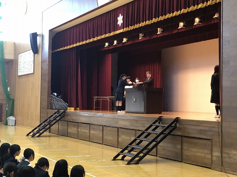 9月27日(土)表彰伝達が行われ、剣道部、美術部、合唱部の表彰が行われました。続く前期終了の全校集会では、校長先生から学期間休業の過ごし方についてお話がありました。この休業期間を有効に活用し、新たな気持ちで後期が始まる次の10月3日 (金) の登校日を、全員が迎えてくれることを願っています。