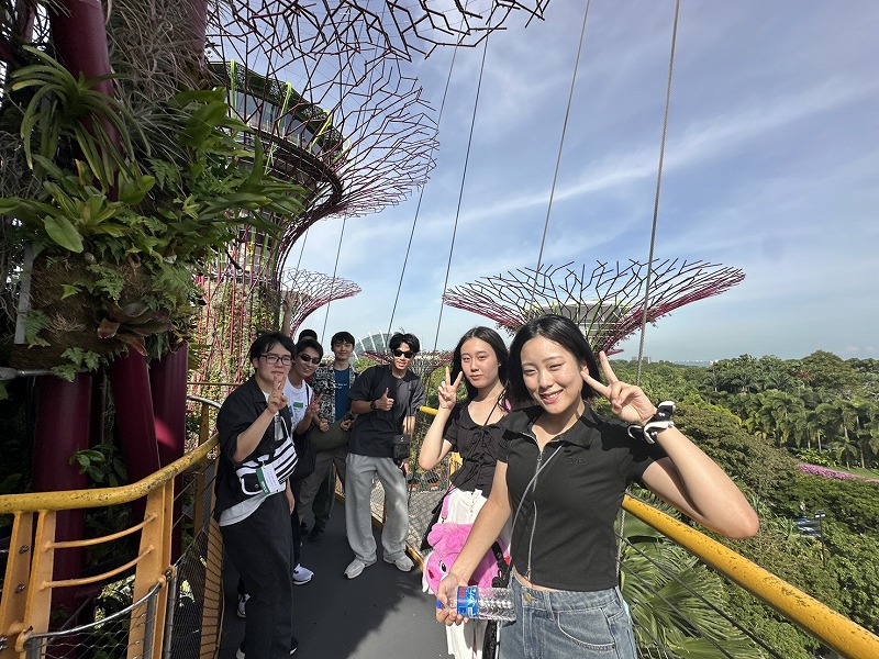 11月7日(金)、修学旅行第1団は朝にマレーシアを出発し、シンガポールへ移動しました。 到着後はマーライオンを見学し、クラスごとに記念撮影を行うなど、最後の観光を楽しみました。 その後はガーデンズ・バイ・ザ・ベイを訪れ、日本では見ることのできない多様な植生に触れ、生徒たちは自然の美しさに感動している様子でした。 夕食時には解散式が行われ、充実した修学旅行を振り返りながら、仲間との時間を名残惜しそうに過ごしていました。 フィナーレを飾るマリーナベイ・サンズのレーザーショーでは、その幻想的な光景に歓声が上がり、忘れられない思い出となりました。 夜の便でシンガポールを出発し、長時間のフライトを経て、11月8日(土)の昼過ぎに無事新千歳空港へ到着しました。 生徒たちは5泊6日の海外研修を通して、多くの学びと感動を得た様子でした。