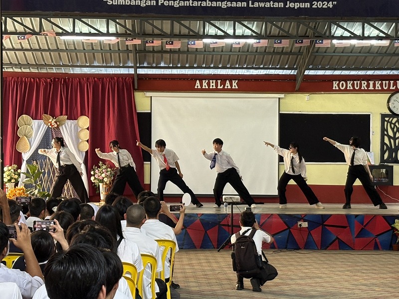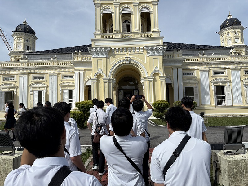 11月7日(金)、修学旅行4日目の午前中はマレーシアの学校の生徒さんたちと交流を行いました。マレーシア、中国の伝統ダンスを観させてもらい、様々な遊びを体験させてもらいました。一高生からは事前に準備した日本の曲に合わせたダンスを披露したり、クラスごとに日本での遊び(にらめっこや紙飛行機、爆弾ゲームなど)を一緒に行いました。 午後はアブバカール・モスク、王宮に訪れ、歴史に触れながら見識を深めました。