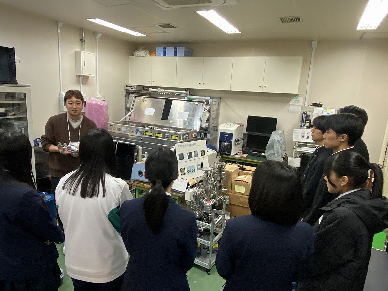 その後の見学では,過冷却水からの凝固やダイヤモンドダストを生徒が実際に作る体験なども織り交ぜながら,大学院生ともたくさん交流させていただき,質疑応答では,多くの素朴な質問にユーモアを交えながら丁寧に答えていただきました。
