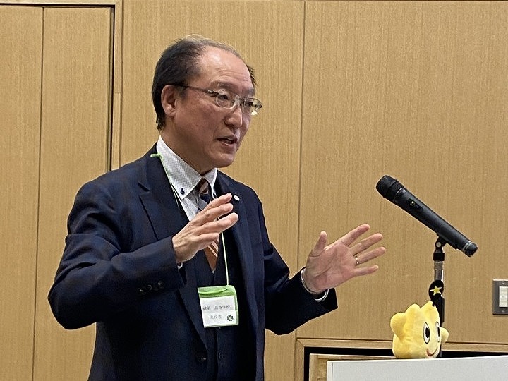 室蘭工業大学は現在「松田ビジョン」にもとづくイノベーションを進めており,専門分野と「情報」を融合したプロジェクトを多くおこなっています。講演は松田先生の専門である超伝導エレクトロニクスの説明に始まり,最新の「宇宙工学」,「リモートセンシング技術」などの研究紹介,そして,大学院教育改革や女性研究者育成など,室工大が進める様々な取り組みにも触れていただきました。約70分の講演があっという間に過ぎ,生徒からは「情報について今学んでおくべきことは?」など多くの質問があり,丁寧に答えていただきました。