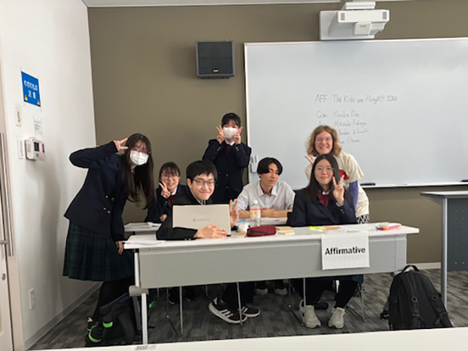 普段は英語のカードゲームをしたり、ジェンガやカルタなどを英語でアレンジしたもので遊んだり、英語の絵しりとりをしたりしています。ハロウィンやクリスマスなどのイベントの時期には飾り付けをしてパーティーを開き、英語圏の文化にも触れています。また、希望制にはなりますが、英語のスピーチやディベート、プレゼンテーション、レシテーションなどの各種大会や外部の交流会などにも参加しています。他校や留学生の方々とのコミュニケーションを通して、より実用的な英語を身に付けることができます。