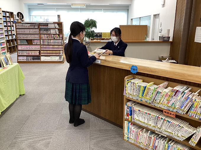 こんにちは。今日も図書館を守り続ける図書局です。現在、7名で図書館の運営を中心に、楽しく活動しています。主な活動としては、本の貸し出しや返却はもちろん、「図書館だより」を定期的に発行したり、館内外の展示物の作成をしています。そのほかにも学校祭では、「古本市」を出店し、古本のほかに局員が手作りしたストラップやミサンガも販売しています。行事が多く、忙しい図書局ですが、どの活動もとても充実感があります。本が好きな方、イベントが好きな方は是非一度、図書館にお越しください。お待ちしております。