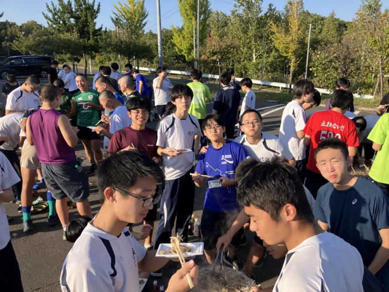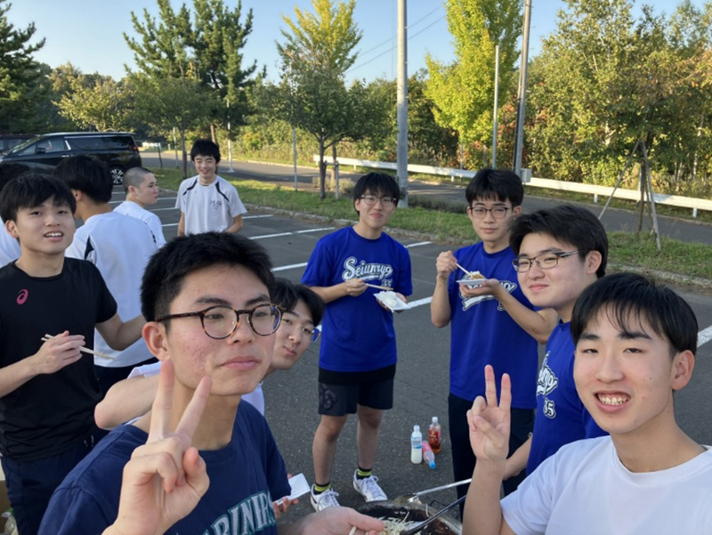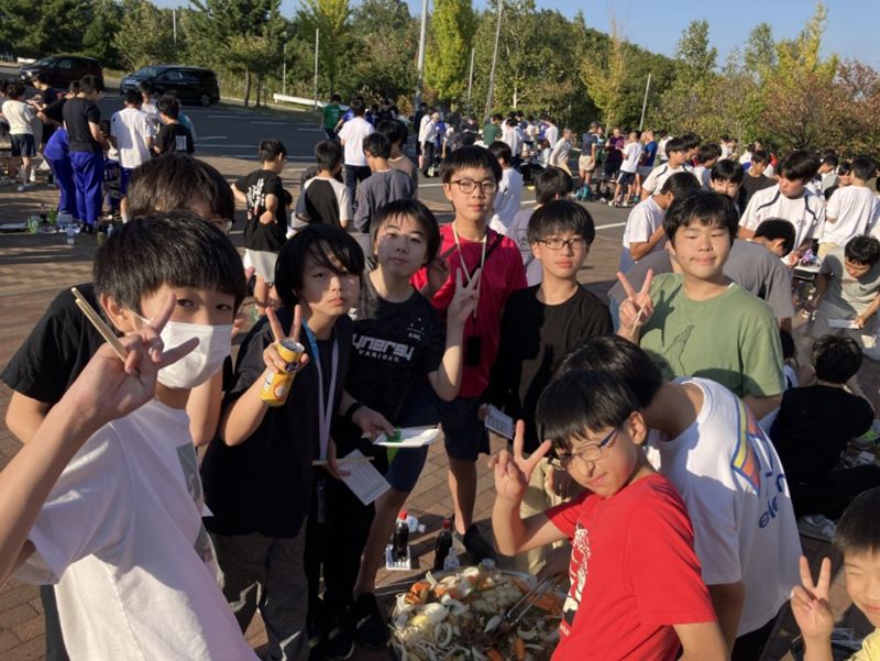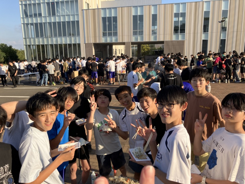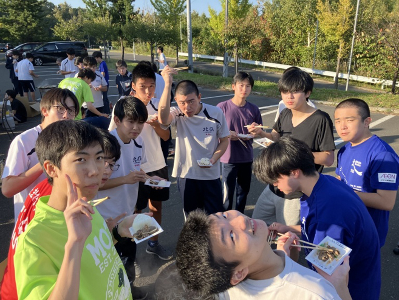 10月4日(土)、寮の行事として「ジンギスカンレクリエーション」を開催しました。北海道の名物料理であるジンギスカンを囲みながら、楽しいひとときを過ごしました。レクの開始にあたっては、谷地田校長と井口寮監長から、定期試験を終えた生徒たちを労うあたたかい挨拶がありました。続いて、松尾ジンギスカンのスタッフの方からおいしい焼き方のレクチャーが行われ、生徒たちは興味津々で耳を傾けていました。そして、高校2年生の阿部君の元気な乾杯の掛け声でレクリエーションがスタートしました。当日の準備は中学2年生が中心となって進め、片づけは中学1年生が担当しました。どの生徒も積極的に取り組み、協力して行事を支える姿が印象的でした。天候にも恵まれ、活気にあふれたレクリエーションとなりました。今回のジンギスカンレクを通して、生徒たちにとって楽しく充実した時間となりました。今後の寮生活においても、この協力し合う姿勢を大切にしていきたいと思います。
