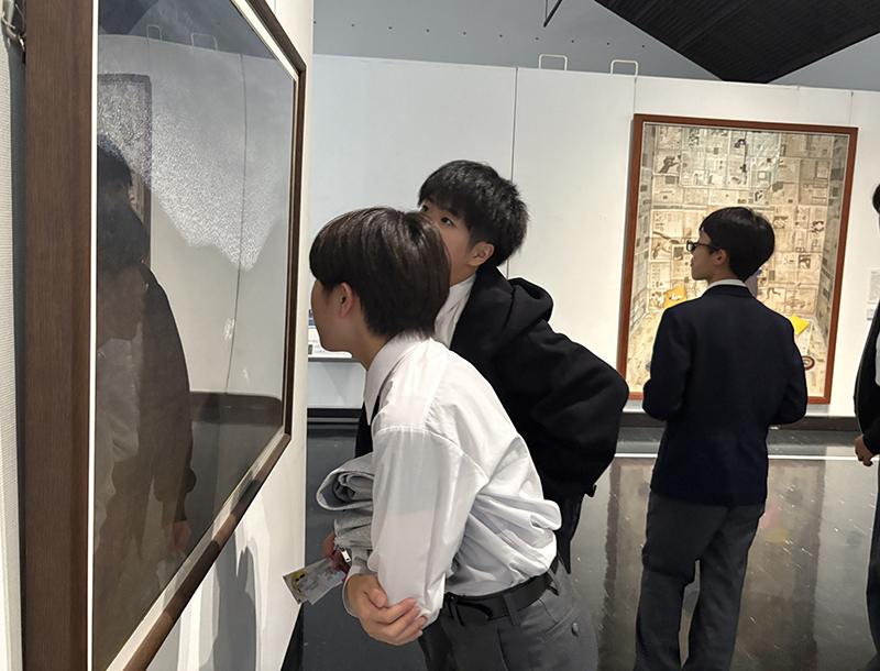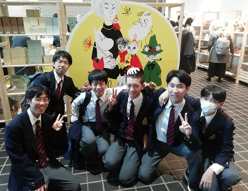 次に、生徒たちは「北嶺カルチェラタン」の一環として、北海道立近代美術館も訪れました。学芸員の方による展示作品に関する概要の講義を受け、その後、常設展と特別展を鑑賞しました。今回の特別展「トーベとムーミン展」では、ムーミンの小説の出版80周年を記念し、ムーミンの生みの親であるトーベ・ヤンソンの画業を振り返る展示となっており、大変多くの人で賑わっていました。近年、ムーミン作品の人気が高まっている様子を感じられ、生徒達もかわいらしいムーミンの絵に多くの笑顔が見られました。