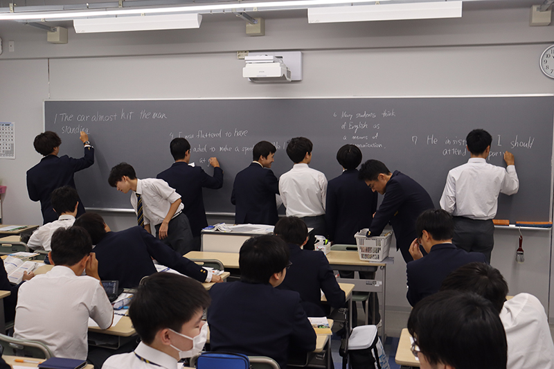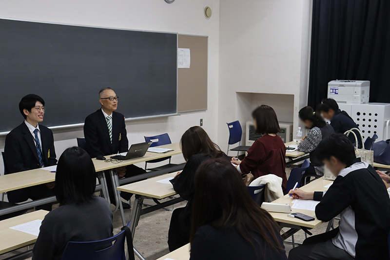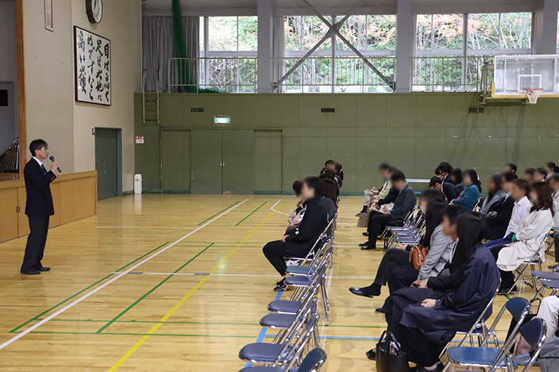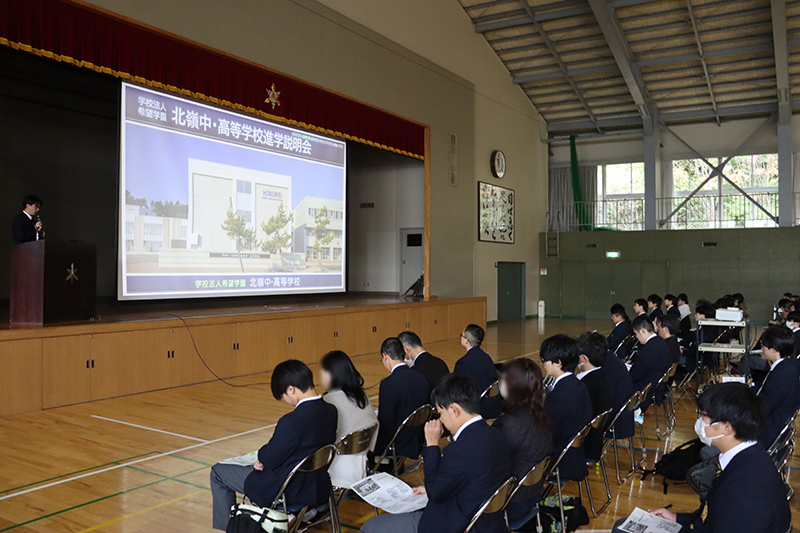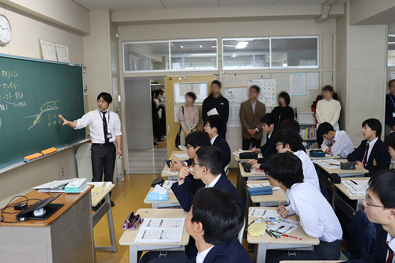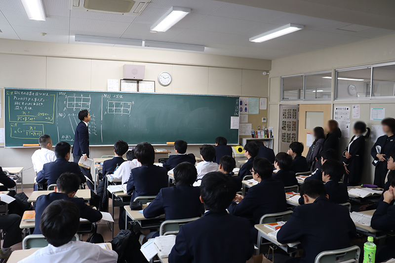 参観授業後には、中学1年生~高校1年生で学年懇談会を実施しました。各学年主任より、生徒たちの近況や学習状況、今後の学校での取り組みについての報告をしました。また、大学受験に向けた重要な時期を迎える高校2年生については、進学説明会が実施されました。谷地田校長からの厳しくも温かい激励の言葉を皮切りに、紀國谷学年主任、郷頭副校長(進路指導部長)より、最新の入試情報や学年の現状について詳細な説明がありました。いよいよ、受験生となる36期生にはここを大きなターニングポイントとして頑張って欲しいと思います。