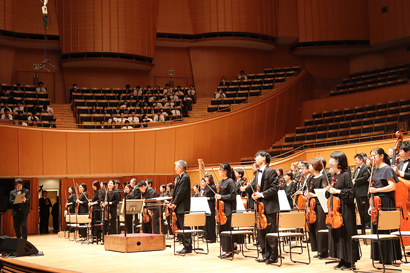 全校生徒が一堂に会し、さらに約300名の保護者の皆様にもご来場いただき、オーケストラによる迫力ある演奏、心に響く歌声、ユーモアあふれるトークなど、多彩なプログラムで40周年の節目が華やかに彩られ、会場は感動と笑顔に包まれました。