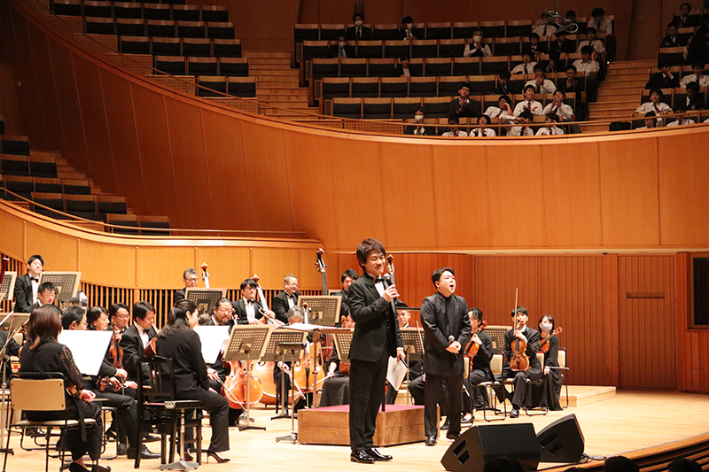 当日は、札幌交響楽団の皆様をはじめ、本校8期生で関西フィルハーモニー管弦楽団特別契約首席チェロ奏者の向井航さん、北嶺生の応援歌である青雲寮寮歌『道なき未知へ』の作詞作曲を手がけたシンガーソングライターの半﨑美子さん、そして司会には演劇ユニット 「TEAM NACS」のリーダーで俳優の森崎博之さんをお迎えし、特別なひとときを過ごしました。