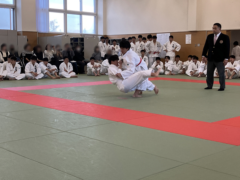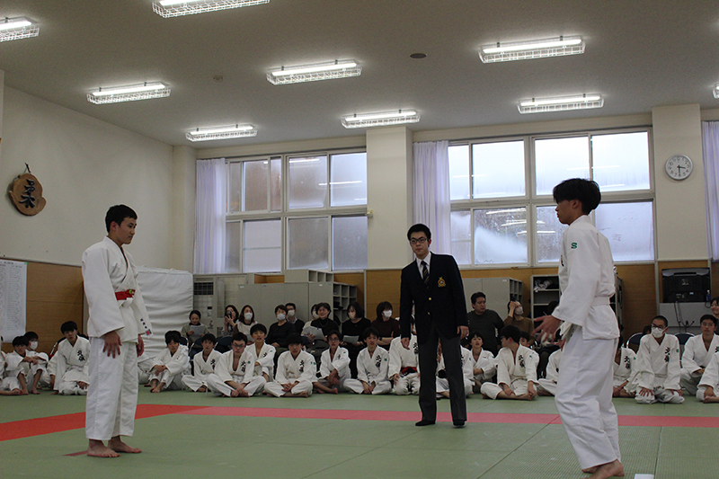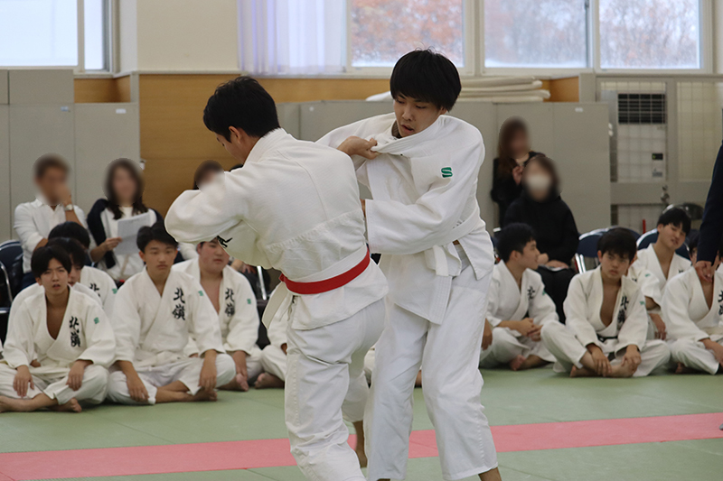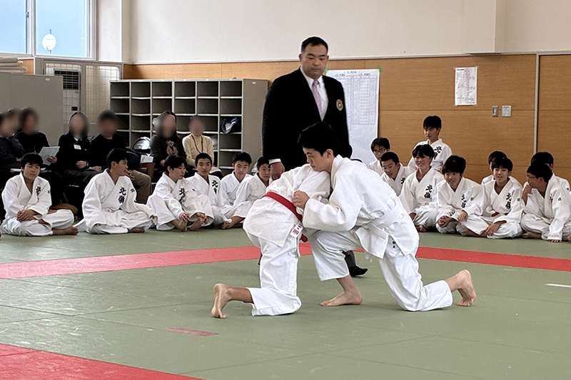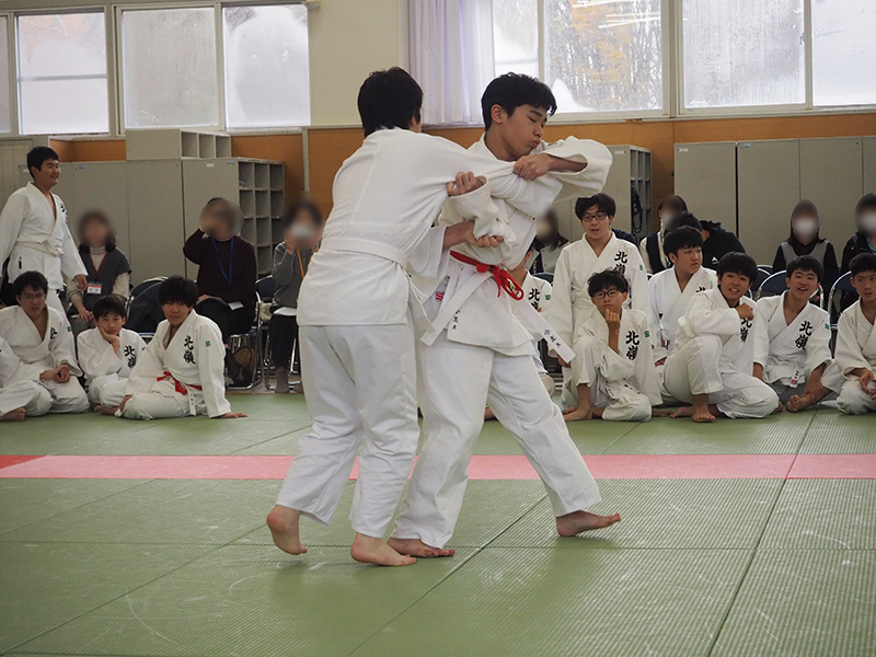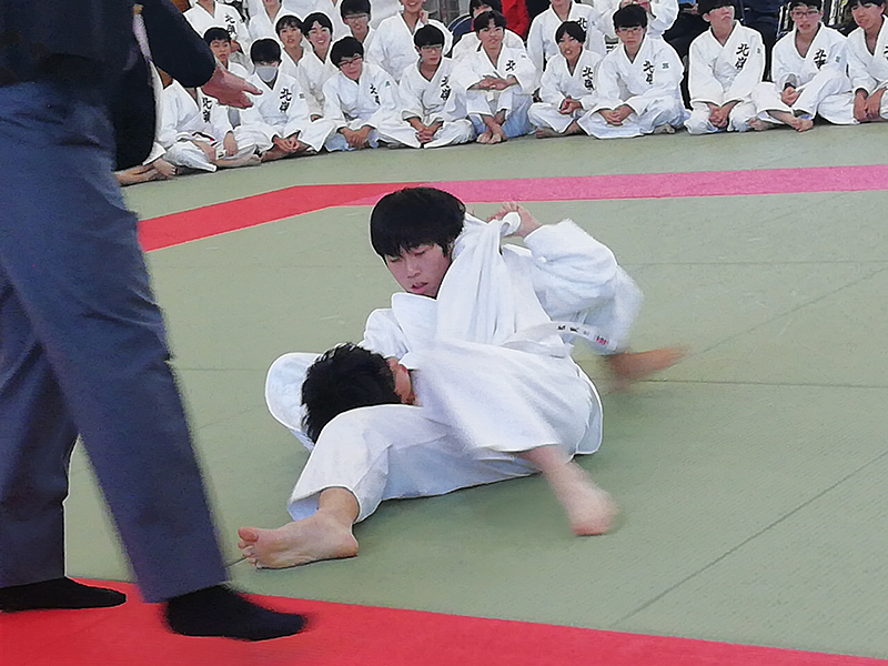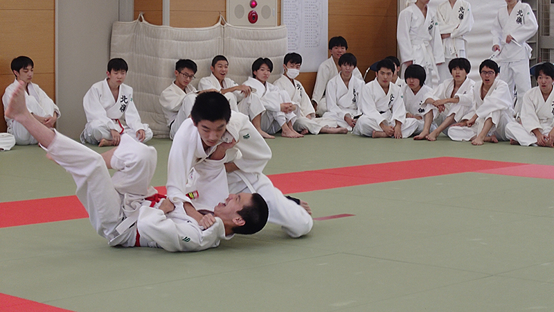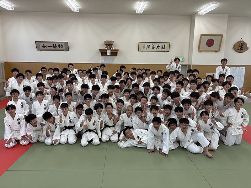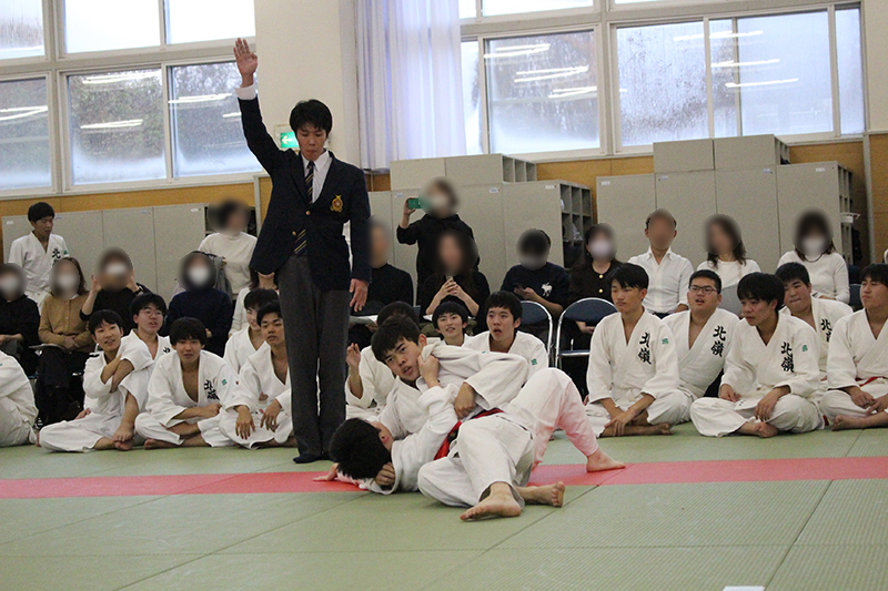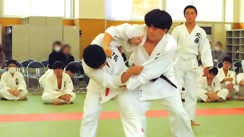 北嶺では、全校生徒が入学から高校3年生になるまで、週に1時間の授業で柔道に取り組みます。生徒の9割以上が初段(黒帯)を取得し、有段者として卒業していきます。柔道を通じて生徒たちが技術の習得だけでなく、「精力善用」「自他共栄」という柔道の精神を学び、人間としての成長を目指しています。予選では、生徒たちが授業で培った成果を存分に発揮し、全力で挑む姿が見られました。礼儀正しい所作や相手を尊重する態度、互いに切磋琢磨する様子は、柔道の素晴らしさを改めて感じさせるものでした。一つひとつの試合には、技と精神力がぶつかり合う真剣な緊張感と、勝敗を超えた感動があります。柔道を通じて得られる達成感や成長の喜びは、生徒たちの心に日々刻まれていっています。