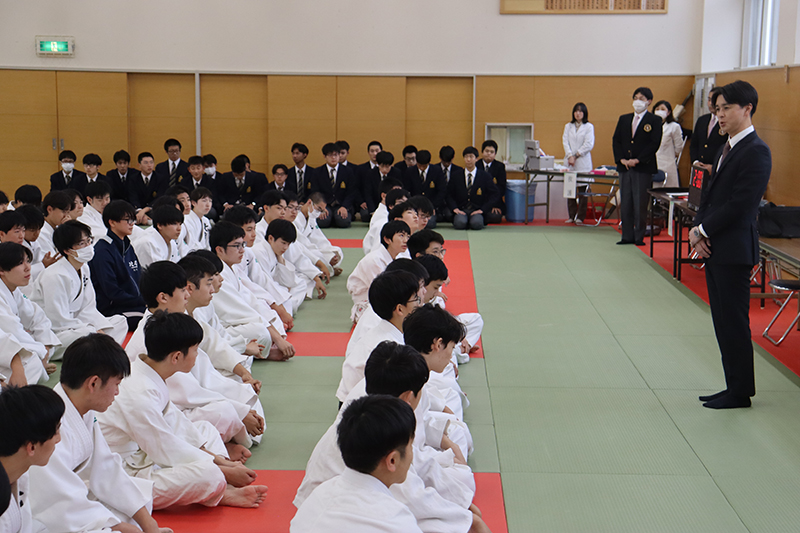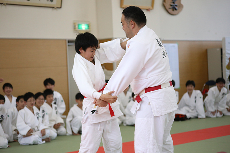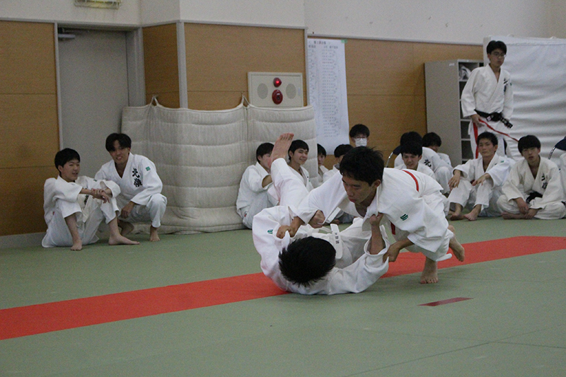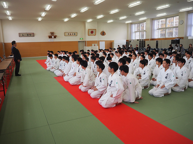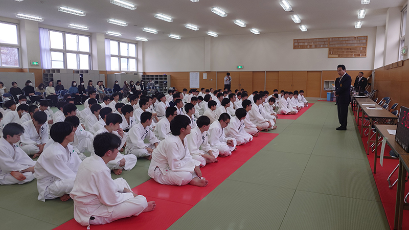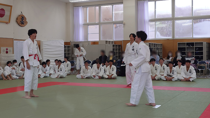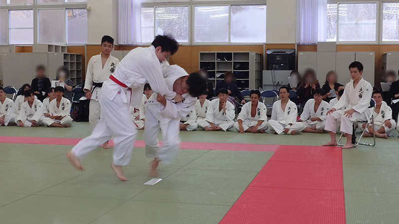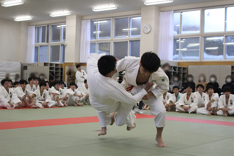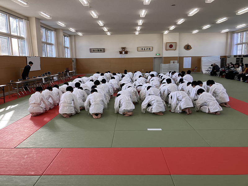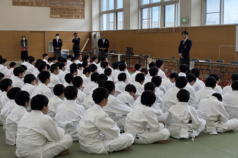 北嶺では、全校生徒が入学から高校3年生になるまで、週に1時間の授業で柔道に取り組みます。生徒の9割以上が初段(黒帯)を取得し、有段者として卒業していきます。柔道を通じて生徒たちが技術の習得だけでなく、「精力善用」「自他共栄」という柔道の精神を学び、人間としての成長を目指しています。予選では、生徒たちが授業で培った成果を存分に発揮し、全力で挑む姿が見られました。礼儀正しい所作や相手を尊重する態度、互いに切磋琢磨する様子は、柔道の素晴らしさを改めて感じさせるものでした。一つひとつの試合には、技と精神力がぶつかり合う真剣な緊張感と、勝敗を超えた感動があります。柔道を通じて得られる達成感や成長の喜びは、生徒たちの心に日々刻まれていっています。