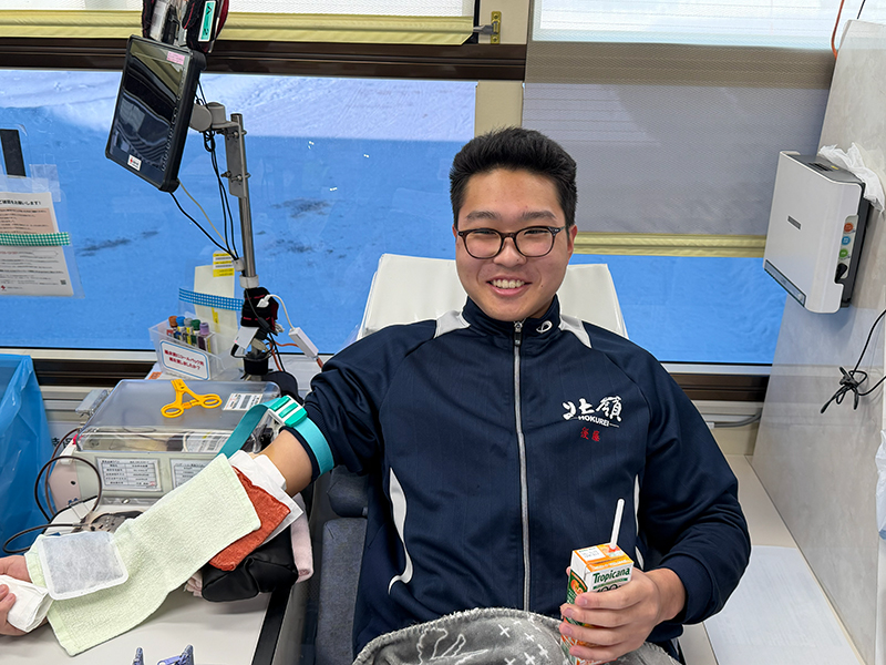 当日は、雪の影響で献血バスや登校バスの到着が遅れた影響があり、予定よりも開始が遅れてしまいましたが、スムーズに受付や事前問診、献血を行うことができました。北海道赤十字血液センターの職員の方々には大変お世話になり、感謝申し上げます。