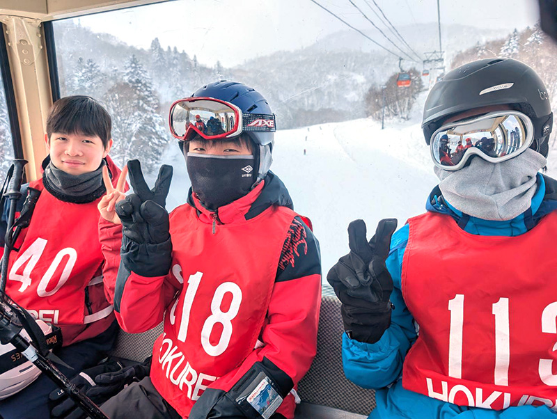北嶺には本州出身の寮生も多く在籍しており、北海道ならではのウィンタースポーツを仲間とともに体験する貴重な機会となっています。スキー未経験の生徒も、体育の先生やインストラクターの方々の丁寧な指導を受けることで、着実に上達していきます。高校2年生にもなると、ほぼ全員が自由自在にスキーを操り、ダイナミックな滑りを見せてくれます。こうした経験ができるのも、北の大地にある北嶺ならではの魅力の一つです。