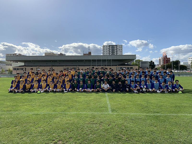 今年は感染予防を徹底し、試合は7人制ラグビー、スクラムは組まない、フィールドを縮小する等の特別ルールで行われています。そして今年は中学3年生から高校2年生までは、豊平区月寒にある天然芝の月寒ラグビー場という最高の環境をお借りして開催することができました。