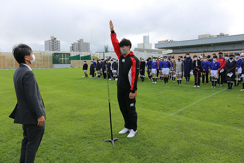 今年度は中学1・2年生が7人制ラグビー(中学2年生は、雨天のためタグラグビーに変更して実施)、中学3年生が12人制ラグビー、高校1・2年生が15人制のラグビーを行いました。各学年の大会は、感染対策としてスクラムは密着しない形のスクラムとし、特別ルールで行いました。また、中学3年生から高校2年生までは、豊平区月寒にある天然芝の月寒ラグビー場という最高の環境を貸し切っての実施となりました。